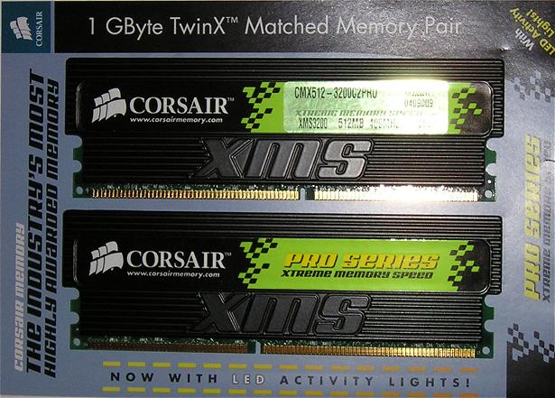 Arbeitsspeicher: 1GByte Corsair TwinX 3200 CL2 XMS Pro Series